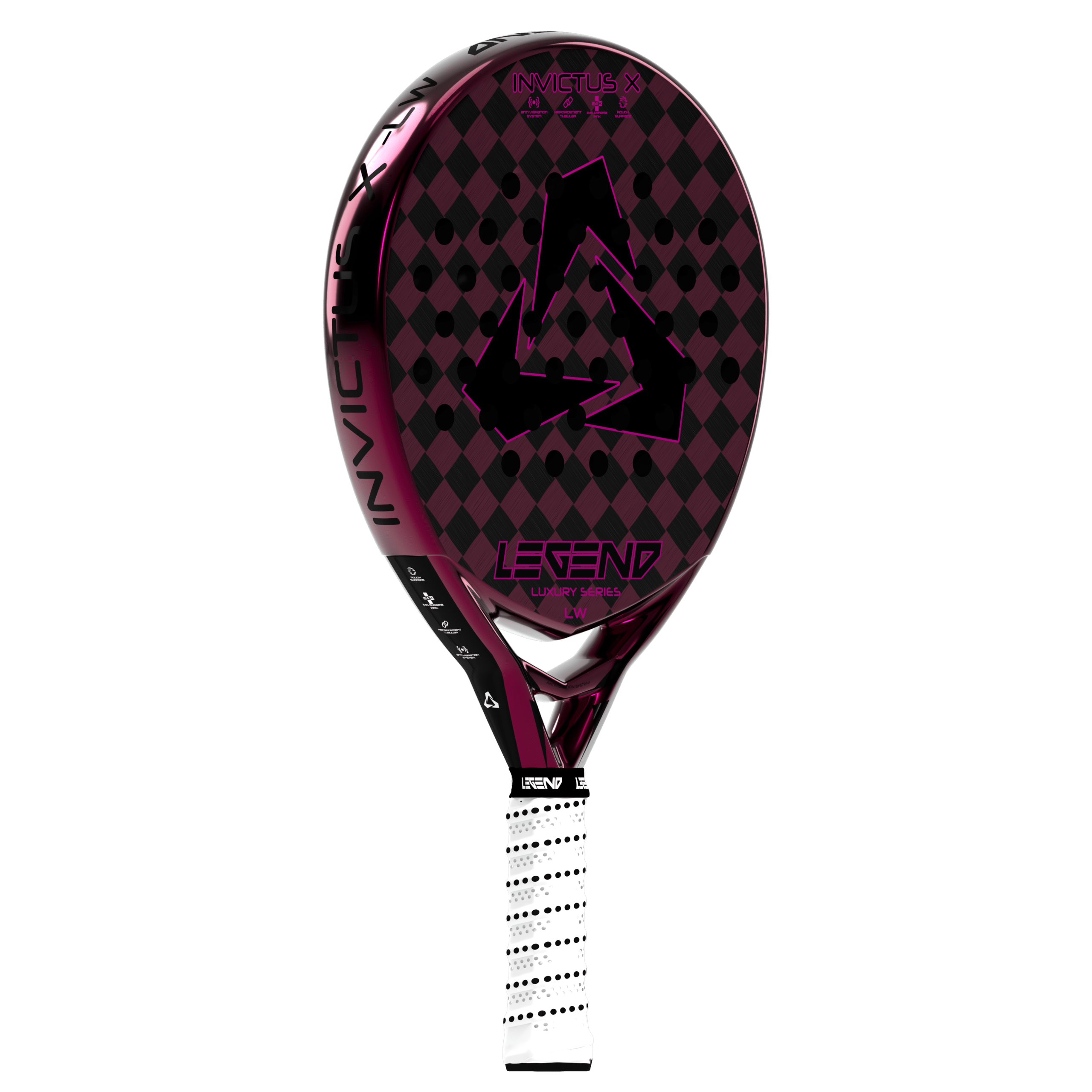 The matte, glossy, and rough sand finish improves spin potential while giving the racket a distinctive luxury appearance in purple. Designed for medium to advanced players, the Invictus X LW is the perfect choice for those looking for a refined, lightweight control racket with a premium luxury identity.