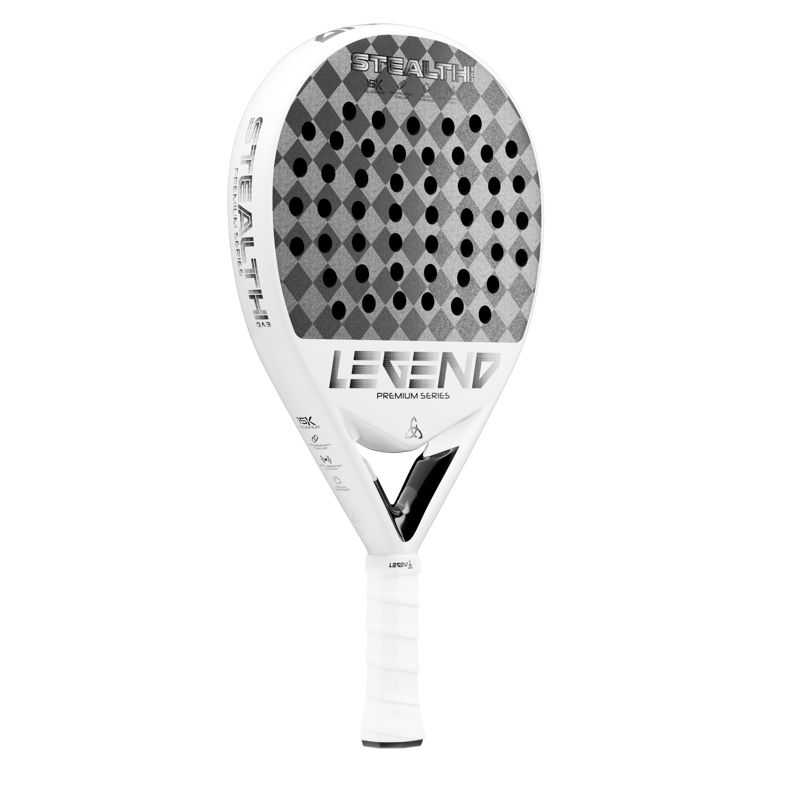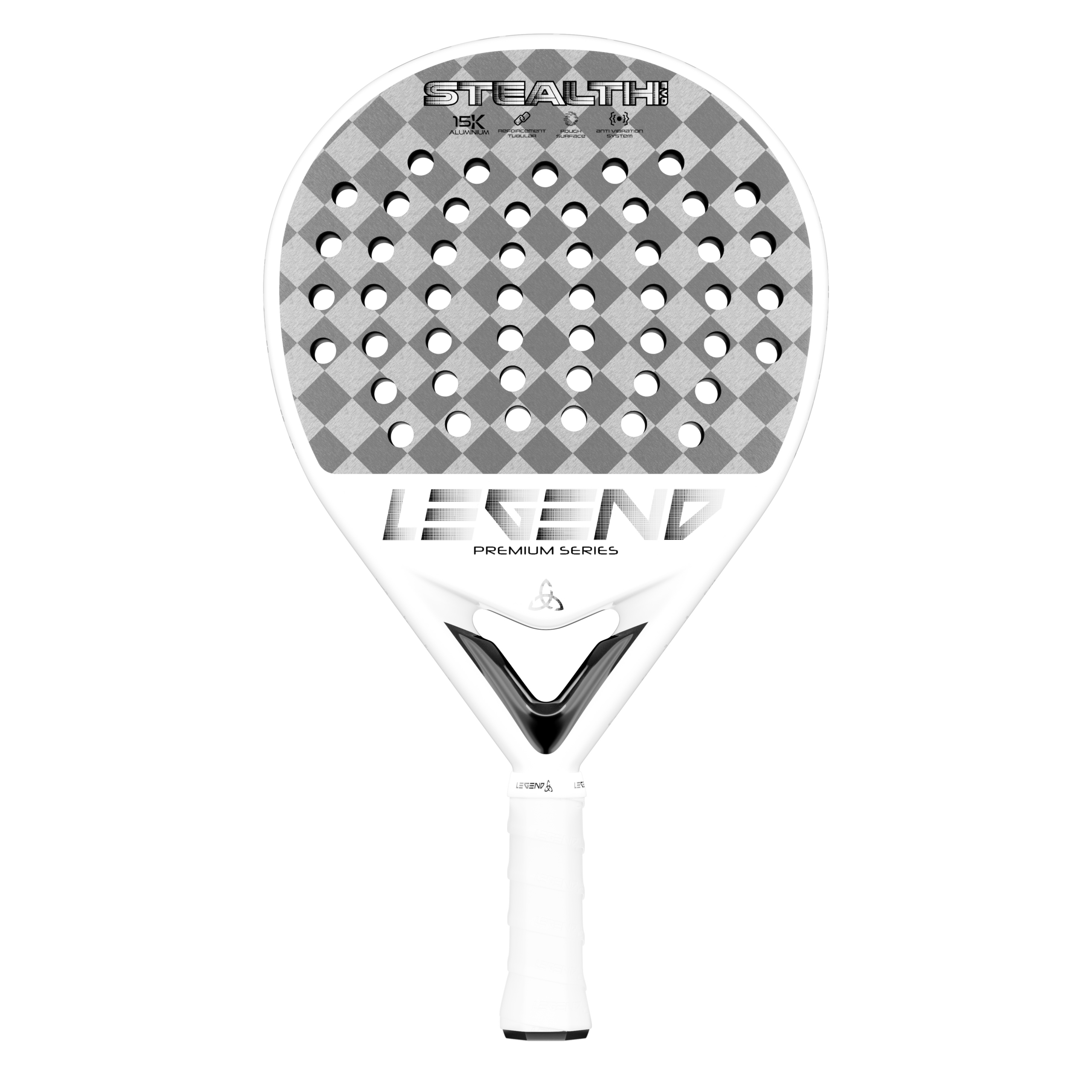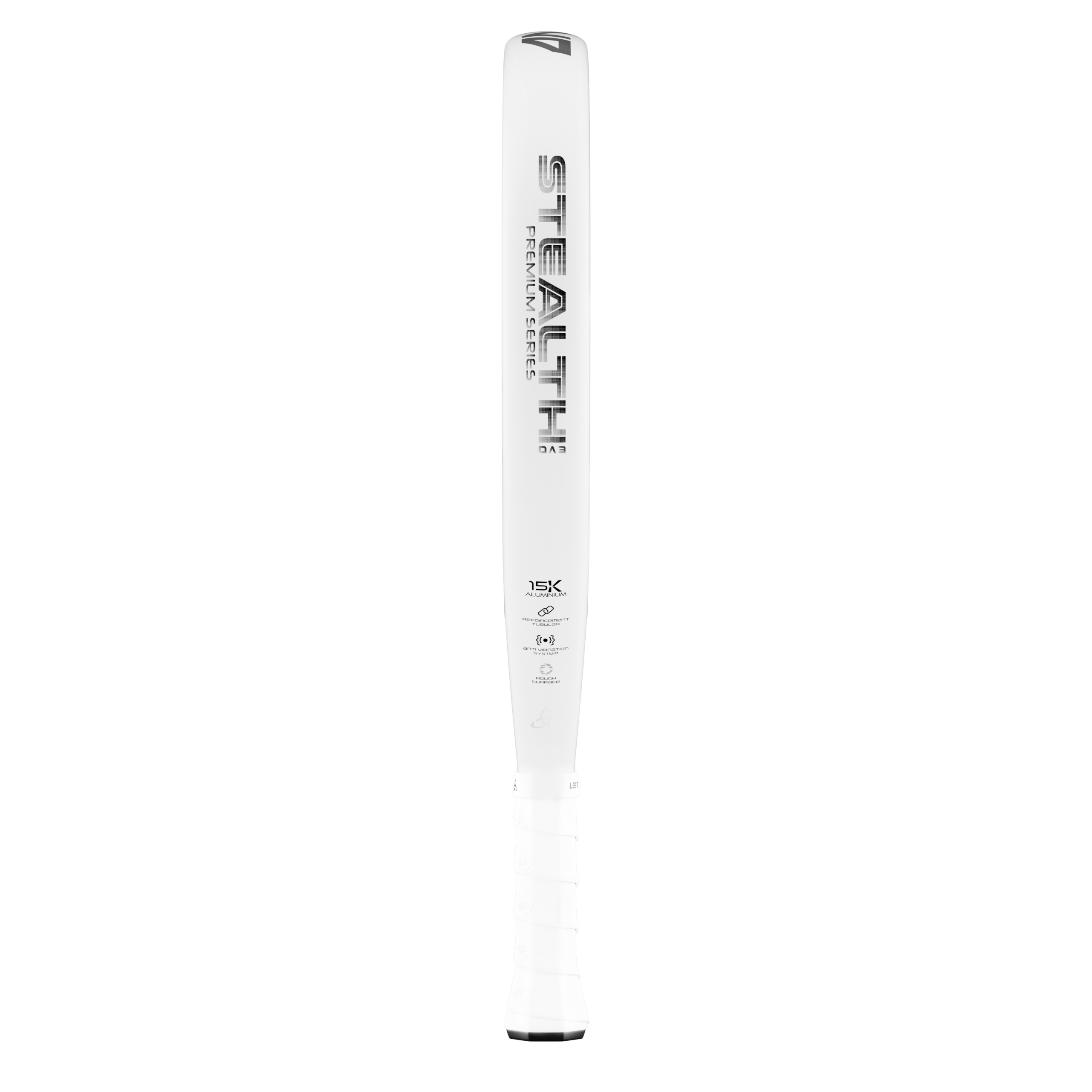 Stealth EVO, designed specifically for advanced players who demand precision and power. This racket boasts a sleek white base and an innovative face crafted from aluminium-titanium carbon fibers. The sand-effect texture on the surface enhances grip, allowing for exceptional control and spin. Thanks to its medium balance and soft EVA core, the Stealth EVO combines comfort with responsiveness. Its tear-shaped format supports dynamic performance, making it perfect for an aggressive playing style. Ideal for players seeking both style and substance, this unisex racket is engineered to boost your game on the court.